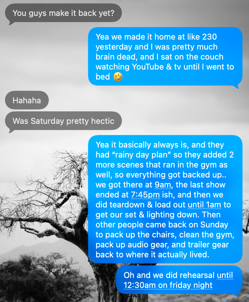 The university Jo & I went to puts on an Easter Passion Play that's a walking play between scenes telling the story of the life death and resurrection of Jesus in ~90 minutes. Throughout high school & college I was heavily involved in the lighting & effects side (and even scene director one year) of the resurrection scene... and then the play didn't happen for a decade.